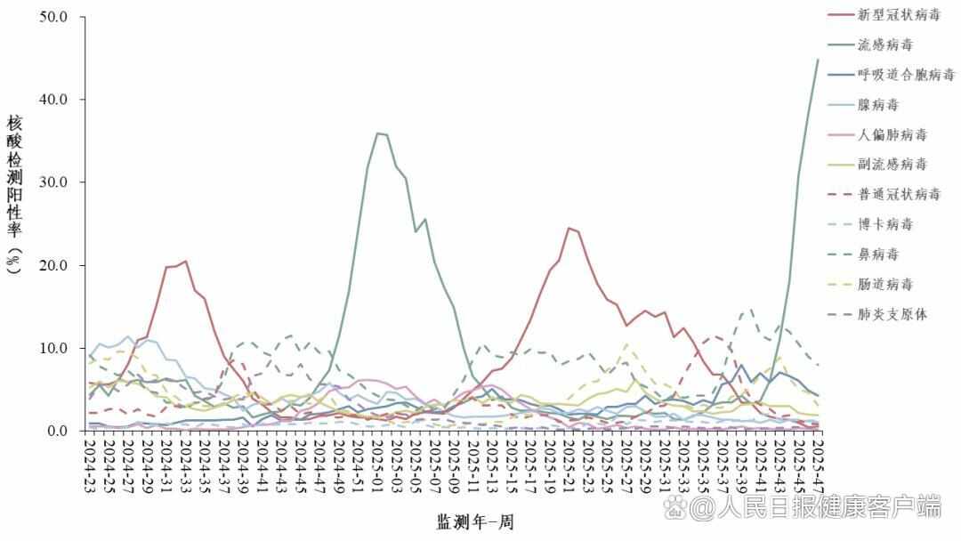 11月27日,中国疾病预防控制中心发布的《全国急性呼吸道传染病哨点监测(2025年第47周)》显示,流感样病例数接近45%,疫情总体已进入流行水平。哨点医院门急诊流感样病例呼吸道样本病原核酸阳性检出率周变化趋势。 《全国急性呼吸道传染病哨点监测(2025年第47周)》针对本次流感客户周期的高峰期、临床特点、药物选择和防护措施的图,接受了首都传媒大学附属北京佑医院感染科主任医师李同增的采访。对于公众最关心的流感暴发时期,李东表示,当前北方地区的流感活动较为活跃。南方正处于快速增长阶段。按照这一涨幅,预计部分省份将在12月中上旬出现流感高峰,大部分省份将在12月下旬出现流感高峰;明年1月初,全国流感活动可能进入下降阶段。针对本次流感周期的特点,李彤表示,本次流感周期主要以甲型H3N2流感为主,在症状表现、严重程度、检测、治疗等方面呈现出三个特点。首先,目前受影响人群以青少年为主。此次发布的报告显示,学校聚集性疫情报告进一步增多,5至14岁病例组检测阳性率高于其他年龄段。李童曾表示,孩子对流感的免疫力比较低,教室等场所人员密度高,冬季户外活动减少,马王聚集性传播的可能性更大。其次,该病逐渐从中小学生蔓延至大学生和上班族,最终可能波及中老年人。李彤曾强调,老年人群体,特别是社交活动较少的群体,可能会被流感高峰期后期感染的年轻人在家中传染。患有基础疾病的老年人在流感后患重病和住院的风险更高。流感疫苗仍然是老年人和老年人预防流感最有效的方法。每年秋季至初冬是接种疫苗的最佳时间。不过,即使你错过了这个疫苗接种期,现阶段,甚至更早的时候,仍然需要接种疫苗,特别是如果你还没有感染流感,但当地有流感疫情。及时接种疫苗可以有效降低感染风险n 以及患严重疾病的可能性。第三,目前有多种抗流感药物可供选择。李东曾介绍,除了奥司他韦和马巴洛沙韦外,今年还新增了适合5至12岁蝙蝠的马巴洛沙韦干悬浮液。国产抗流感药物昂拉地西韦、马苏拉韦、法匹拉韦等也同步上市。可以通过药店、网上渠道等购买。在日常预防方面,李童表示,传统的防护措施仍然有效,比如戴口罩、勤洗手、保持室内通风、减少去人群密集的公共场所等,这些简单的步骤就可以减少病毒的传播和个人感染的机会。建议将它们作为日常习惯坚持下去。
